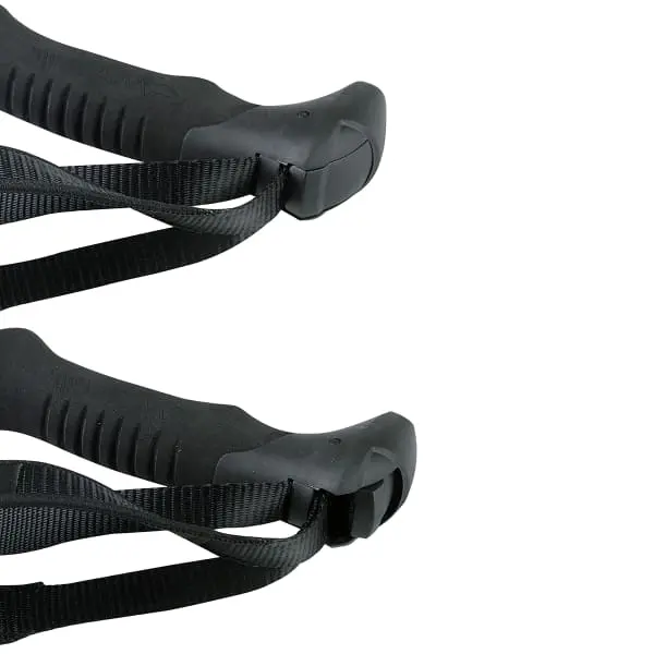 Deze stok zorgt helemaal voor zijn efficiëntie met stevige hardmetalen punten die de vorm hebben van een mes om bevroren terrein aan te vallen, terwijl destijve schijven een groot oppervlak en gekartelde randen hebben voor extra grip op harde sneeuw.